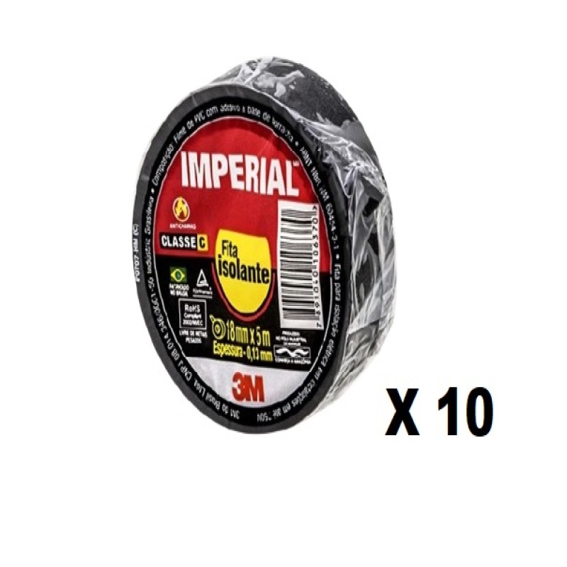 Kit 10 Rolos Fita Isolante Imperial 18mm X 20metros Preta 3m