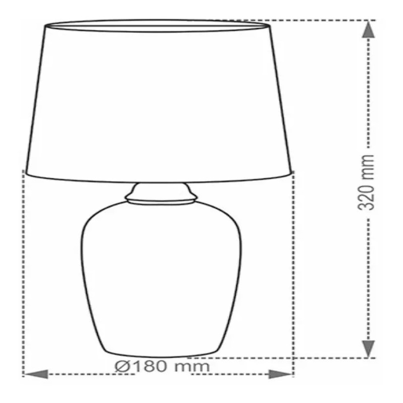 Abajur de Mesa Pottery E27 Taschibra: tolerante e versátil para sua casa. Com 32cm de altura, base de cerâmica e cúpula de tecido, este abajur proporciona um toque de requinte e iluminação aconchegante. Compatível com lâmpadas E27, adapta-se às suas necessidades e garante durabilidade. Perfeito para quartos, salas ou escritórios.Características Gerais do Produto: Dimensões AxLxP (cm): 32 X 18 Produzido em: Cerâmica e Tecido Voltagem: Bivolt (usado tanto em 110v como em 220v) Potência Máxima (Por Soquete): 25W Para Uso em Soquete: E27 Comprimento do Cabo: 1.25 metros, altura regulável Aplicação: Mesa Sistema de Aterramento: Não