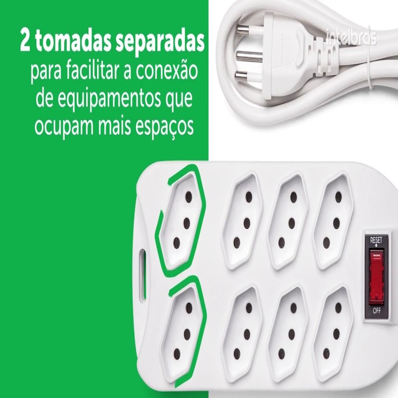 Segurança em dose dupla para seus equipamentosDupla proteção com chave inteligente contra curto-circuito, sobrecarga e varistor contra surtos de tensão.Praticidade e segurançaO EPE 1008+ têm chave inteligente que permite ligar e desligar equipamentos sem tirar o protetor da tomada e possibilita o rearme após curto-circuito.Cabo de 1,5 metro de comprimentoO EPE 1008+ têm cabo de 1,5 metro e conta com 2 tomadas separadas para facilitar a conexão de dispositivos que ocupam mais espaço.