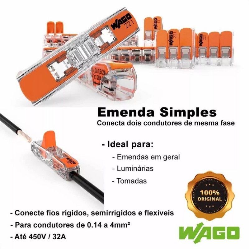 Apresentamos a nova linha de conectores automáticos WAGO 221, a solução mais avançada e confiável para a instalação elétrica em sua residência ou empresa. Com ele, você reduzirá em até 65% o tempo de instalação e manutenção, além de garantir máxima segurança e facilidade na manutenção.