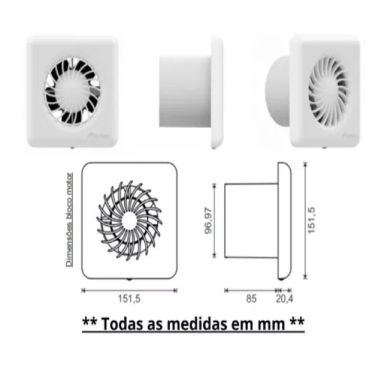 Renovador de ar para ambientes com pouca ou nenhuma ventilação. Promove a ventilação mecânica, evitando a formação de mofo, umidade e mau cheiro.Fabricante: WdB (o mesmo fabricante da Ventokit, Dryplug e Flextic).ACOMPANHA SOMENTE O EXAUSTOR, SEM O DUTO E A VENEZIANA (GRADE DE SAÍDA).CASO TENHA INTERESSE NO MODELO COMPLETO, FAVOR ENTRAR EM CONTATO NO CAMPO "Pergunte ao Vendedor". Características Diâmetro de referência: Ø100mm (4");Adaptável a tubos: Tubos WdB: V.E s/ ISO, Polywest, Compact, ou Tubo PVC (esgoto);Capacidade de renovação nominal: 80 m /h;Garantia: 24 meses;Intensidade de corrente elétrica: 220 volts - consumo 0,09 A;Potência nominal do aparelho: 20W;Potência sonora (à 1 metro): <56.8 dB(A);Recomendado para ambientes de até: 5 m² (banheiro por exemplo);Tensão: 220V