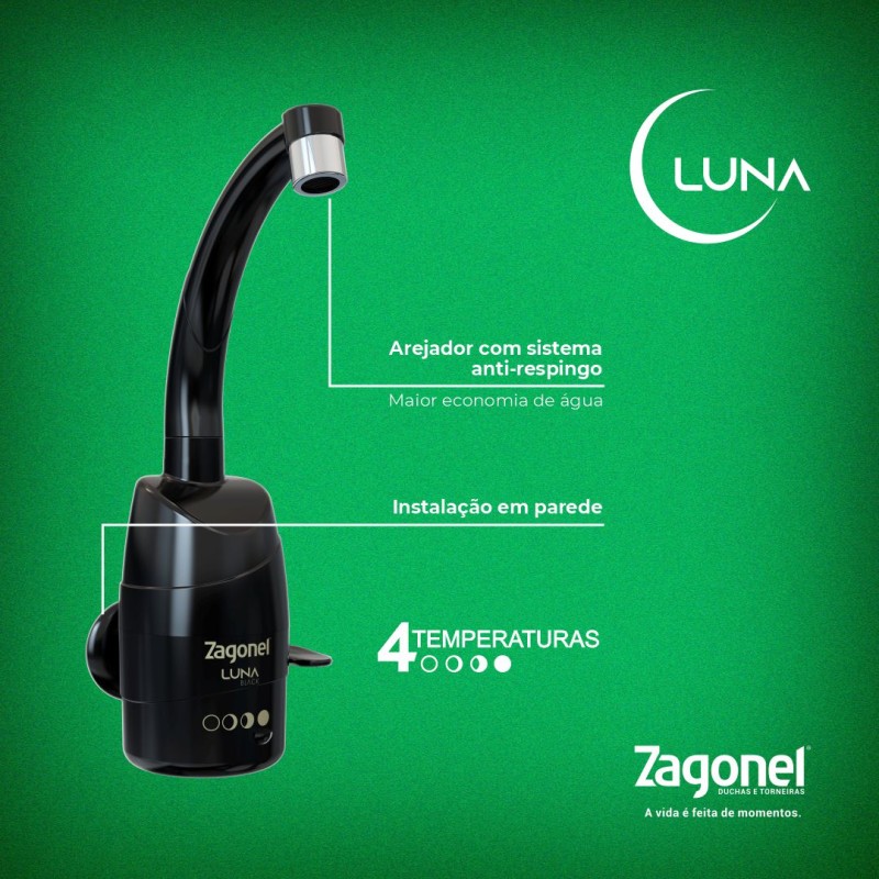 A Torneira Luna recebe este nome inspirada na Lua e sua influência sobre o movimento das marés.Apresenta em seu design, linhas orgânicas que remetem ao movimento e a fluidez das águas, além de ter em seu seletor de temperatura a representação das fases da lua.Tecnologia, eficiência, conforto e design são os quatros pilares fundamentais presentes na torneira Luna. Além de elegância e estilo, ela traz conforto e praticidade com excelente vazão de água e ajuste de temperatura para todas as estações do ano.