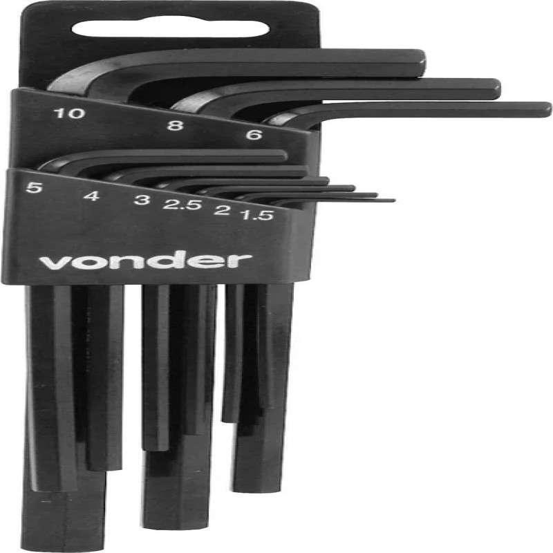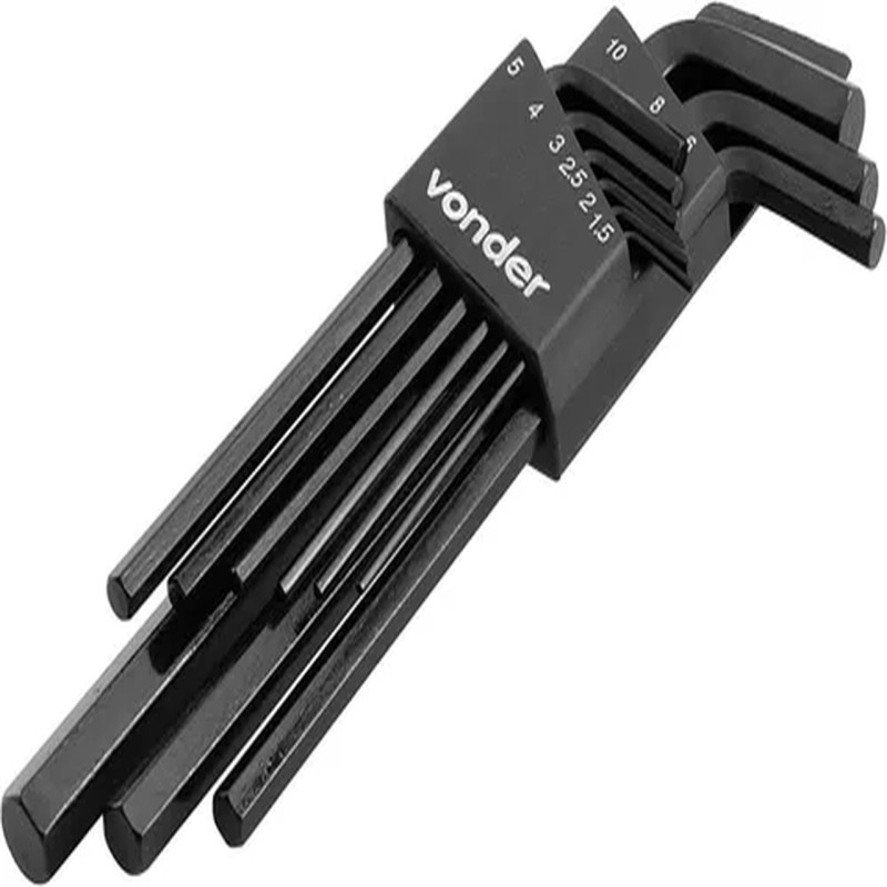 Medidas:1,5 mm, 2 mm, 2,5 mm, 3 mm, 4 mm, 5 mm, 6 mm, 8 mm e 10 mm